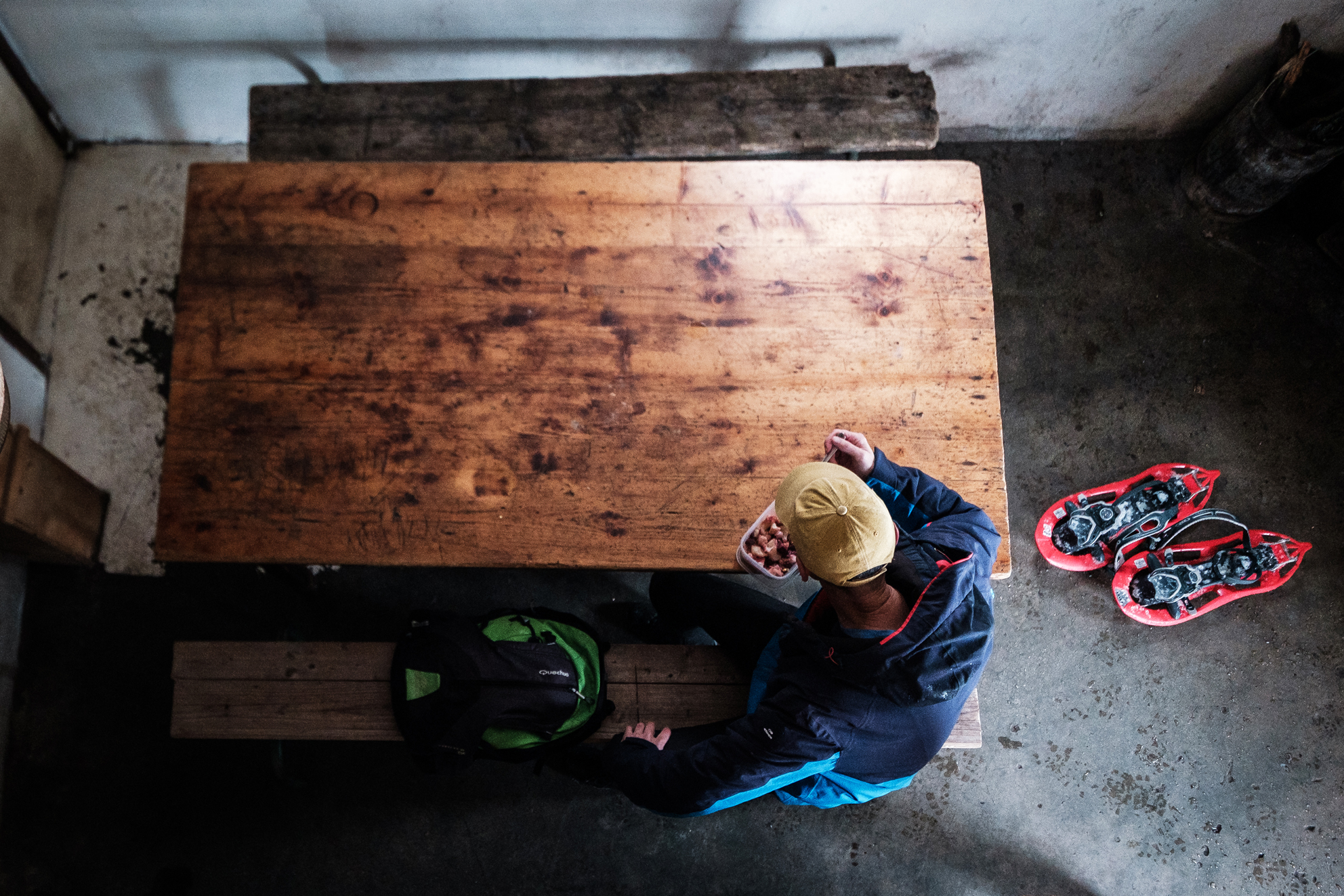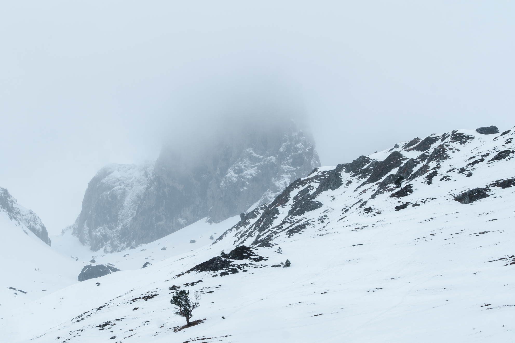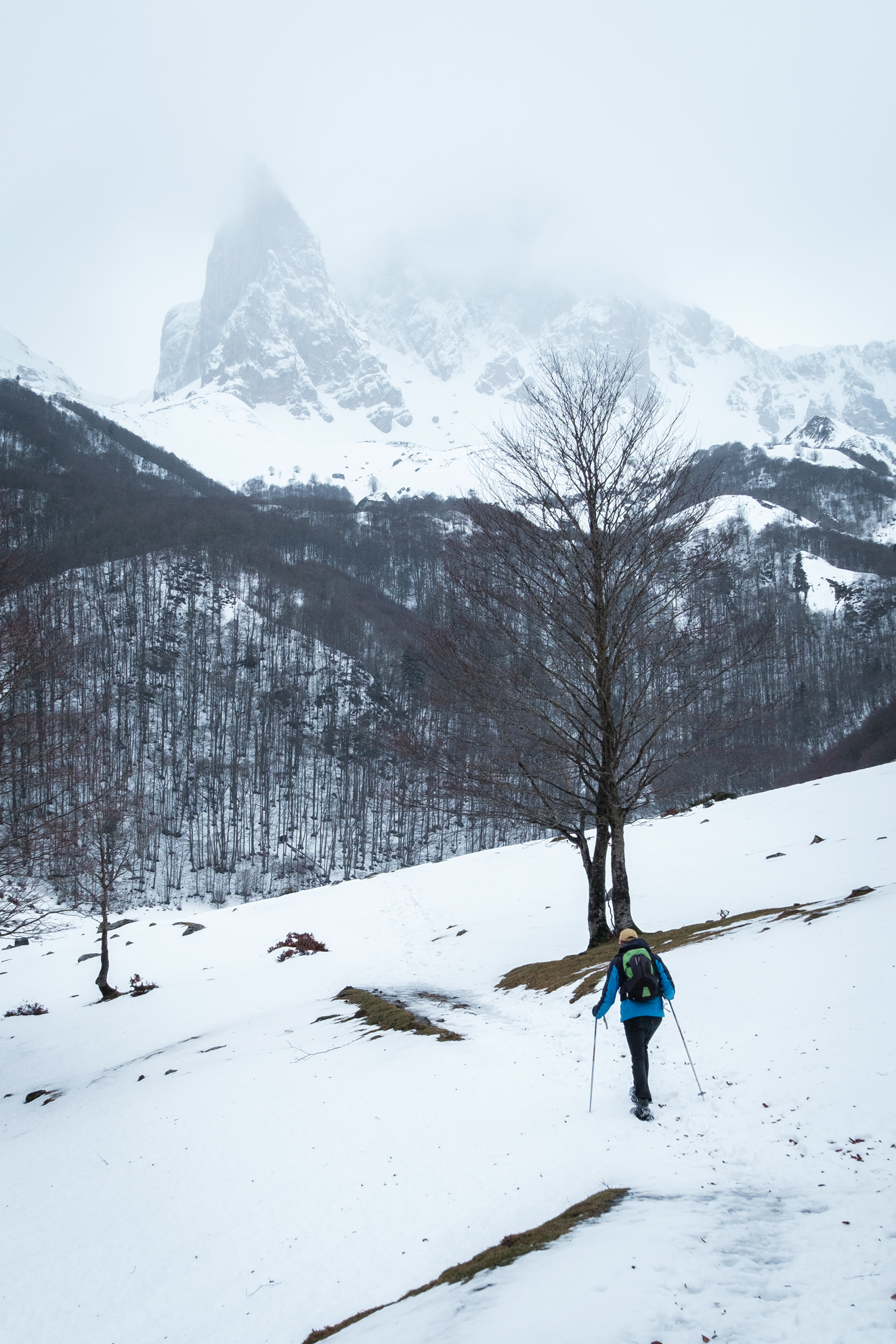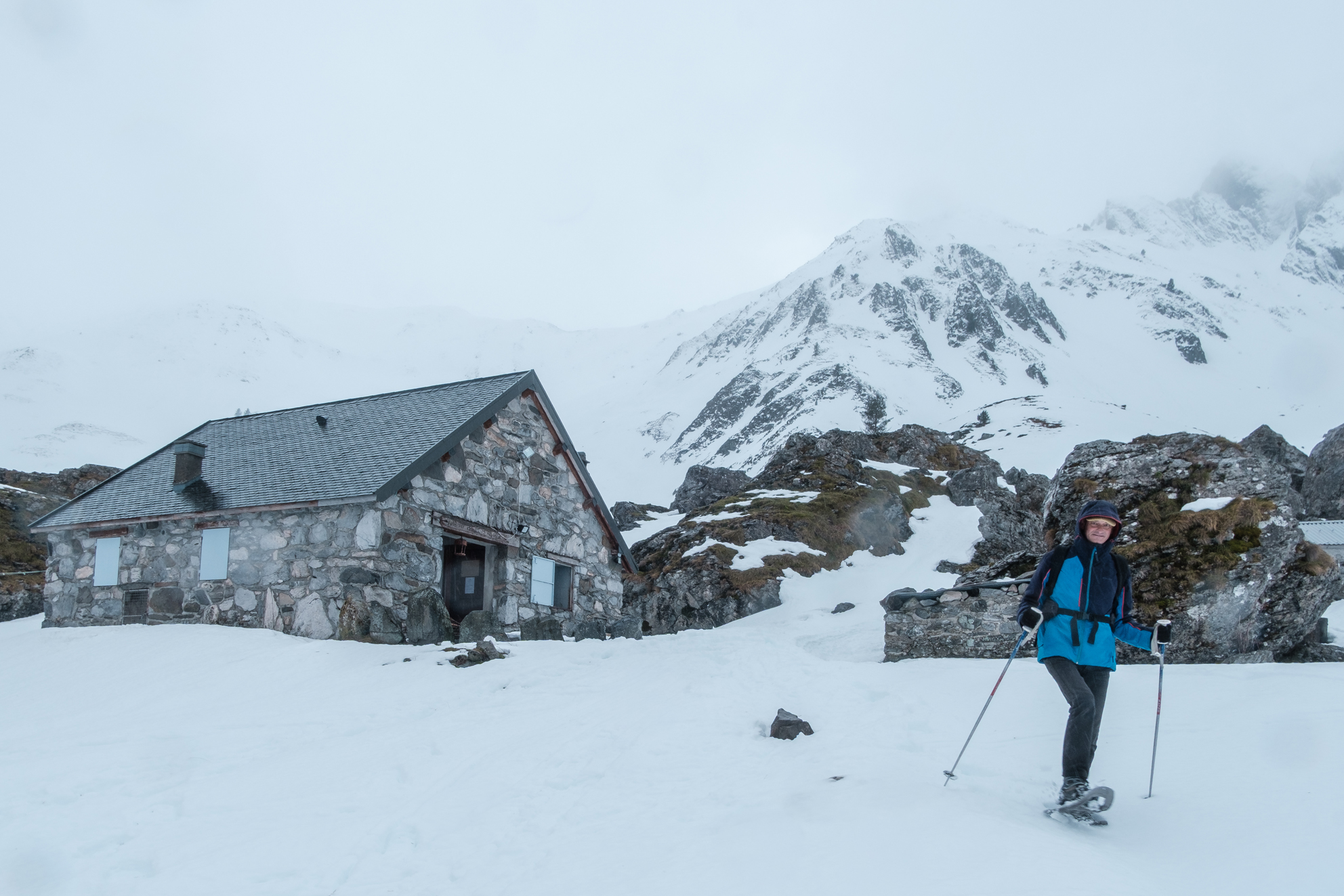 On chausse les raquettes pour cette montée aux cabanes d’Ansabère à Lescun. C’est un peu trop bouché pour apprécier pleinement les aiguilles d’Ansabère mais enneigé, le site est en majesté.